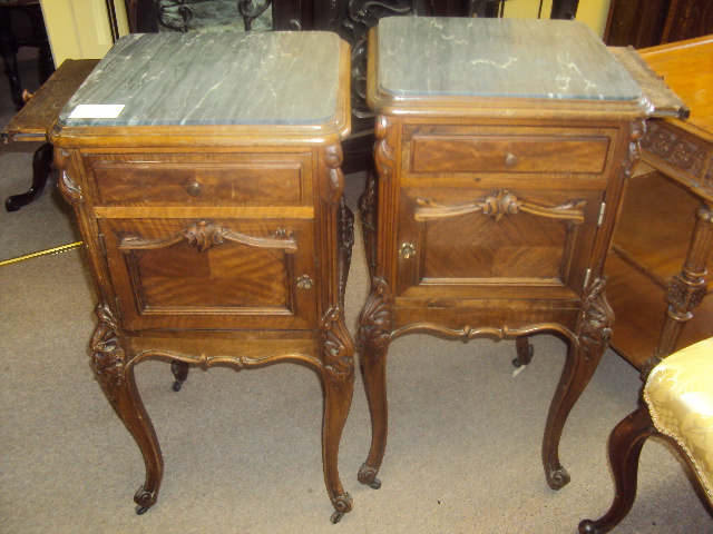 pair of marble top bedsides